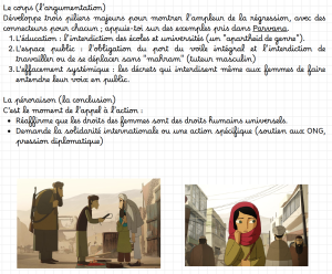 L’objectif de cette activité n’était pas seulement de déplorer une situation, mais de convaincre que le changement est une nécessité absolue. En s’appuyant sur le destin de Parvana, les élèves ont construit des argumentaires structurés autour de trois piliers majeurs de la régression actuelle en Afghanistan :