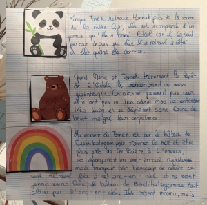 3. Pour chaque image, ils doivent rédiger au moins 3 phrases correctes expliquant le lien entre l’illustration et un moment, un personnage ou une action précise du livre.