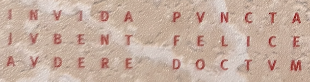 ce qui signifie : De mauvais points obligent le joueur habile à bien jouer. En effet, le jeu des 12 lignes n’était pas seulement un jeu de hasard, un joueur malchanceux avec les dés pouvait malgré tout espérer battre l’adversaire à la condition de se montrer plus malin que lui. L’inscription la plus amusante est celle qui figure sur un plateau de jeu découvert à Rome :