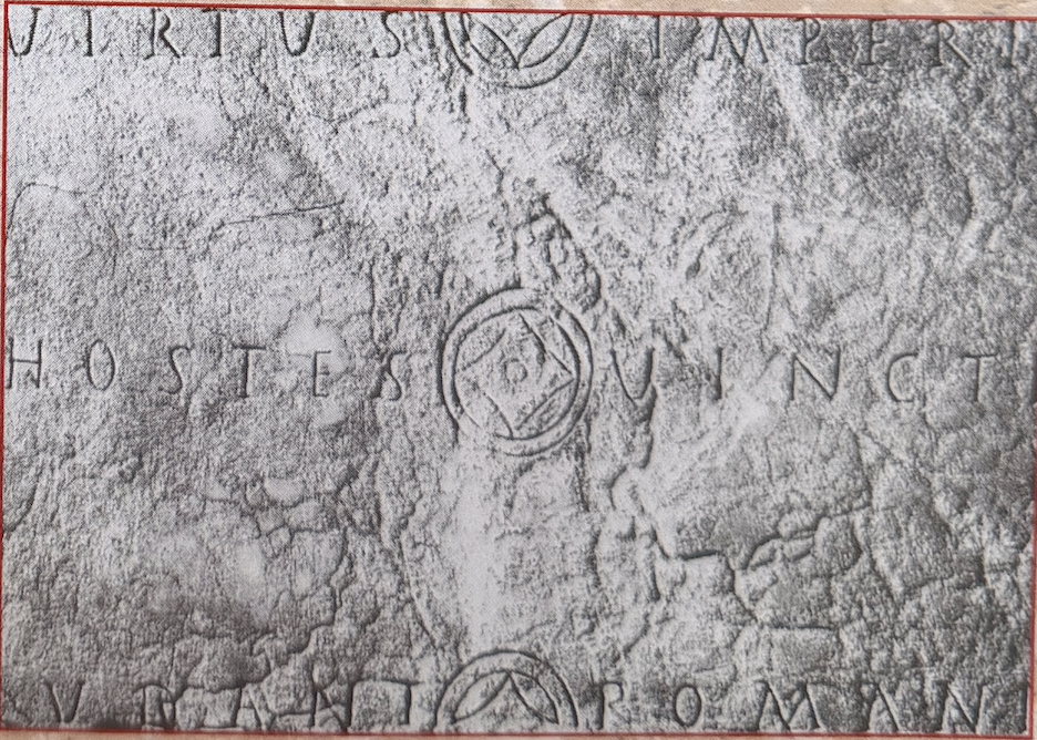 • Virtus imperii/nostes vincti/Iuderi Romani – valeur du Pouvoir/ennemis vaincus/Romains jouent… (dessin d’après la table de trèves, Rheinische Landesmuseum, Allemagne)