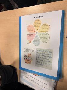 - L’utilisation de couleurs différencie les concepts (exemple : le rouge pour les listes, le vert pour les règles grammaticales).
