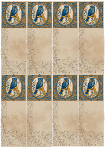 Ces planches de marque-pages, reprenant le hibou bleu iconique de Ludendo et les initiales ornées (A, B, C, D, E, F), sont une ressource que j’ai crée pour un atelier artistique et pédagogique en classe. Elles offrent une opportunité unique d’explorer la calligraphie tout en créant un objet personnel et utile.