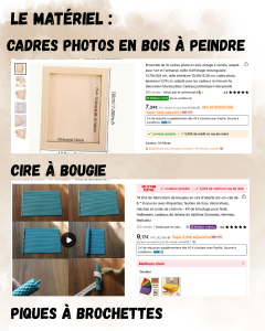 - Des cadres photos en bois à peindre : ils servent de structure aux tablettes.