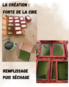 - De la cire d’abeille en feuilles (ou de la cire à fondre) : je l’ai fondue doucement dans une mijoteuse électrique.