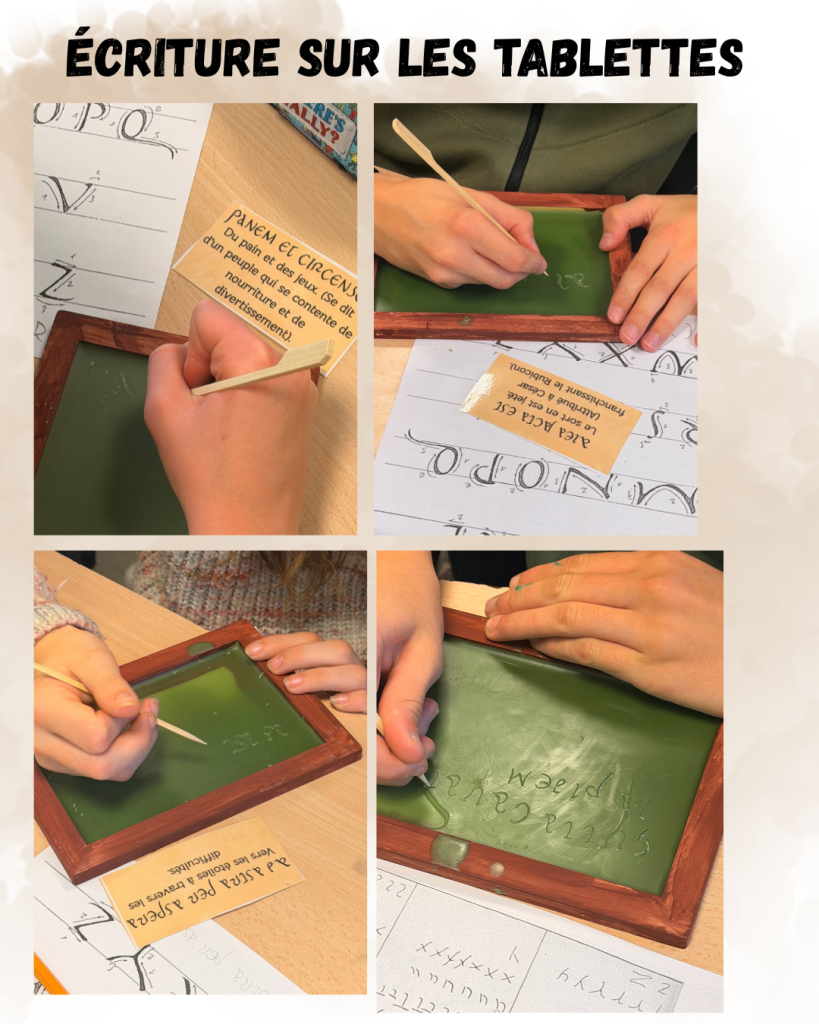 Une leçon d’histoire vivante : initier ses élèves à la cursive romaine sur des tablettes de cire !