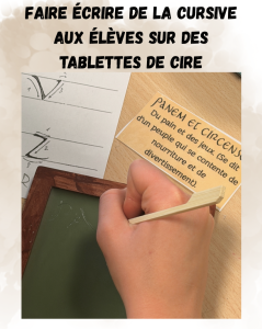 Non seulement cela rend l’apprentissage de la cursive ludique et tactile, mais cela offre aussi une immersion concrète dans la vie quotidienne antique. Le problème ; le coût (environ 30 euros pour une classe) et le temps de création.