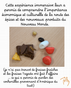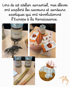 Comment transformer une leçon d’histoire sur la Renaissance en une aventure immersive ? En faisant appel aux sens de nos élèves ! Cet atelier permet de comprendre concrètement l’impact économique et culturel des Grandes Découvertes à travers les produits qui ont révolutionné l’Europe.